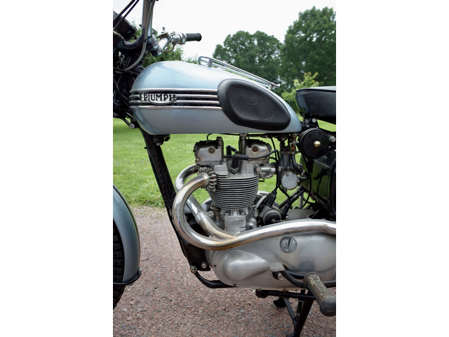 This particular example stands out as a highly original, matching-numbers machine, retaining its factory original components throughout. Remarkably, it still wears its original first paint, original seat cover and original Dunlop rims, rare survivals that speak to careful ownership and preservation over the decades. Such authenticity places it among the more desirable surviving TR5s, as originality is increasingly prized.