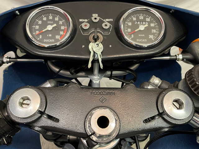 Klassiker in technisch und optischem top Zustand. Die Maschine wurde 2013 sehr aufwendig von Ducati Spezialisten in allen Einzelheiten auf fast Neuzustand restauriert und ging anschließend in eine Wohnzimmerausstellung. Eine Fotodokumentation der Restaurierung mit allen Belegen, eine original Bedienanleitung, das Prospekt 1977, die KFZ-Briefhistorie usw. ist alles vorhanden.