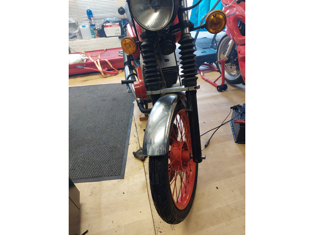 Basis GT 350, Aladoro-Style, Ceriani GP Gabel, Duo Duplex Bremse, Alu Hochschulter-Felgen, Alu-Tank, elektronische Sachse-Doppelzündung, Motor leicht getunt, HU neu.