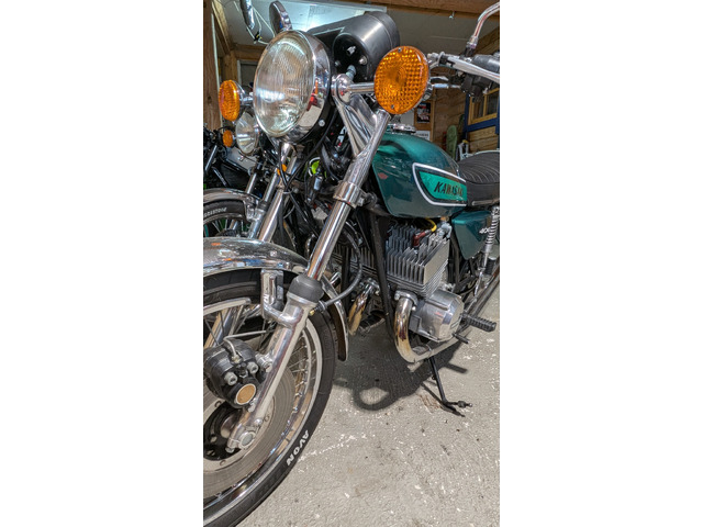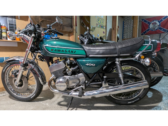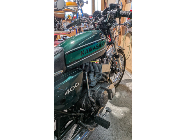 Verkaufe eine sehr seltene und unverbastelte ( kompletter Originalzustand ) Kawasaki 400 S3. Das Motorrad läuft absolut super. In letzter Zeit wurde vieles neu gemacht. Die Unterbrecherzündung wurde durch eine elektronische ersetzt. Neuer Lacksatz in Originalfarbe von Willi Voss. Sämtliche Seilzüge, Wellen, Flüssigkeiten, Bremsbeläge, Radlager, Lenkkopflager, Bremssattel, Bremsleitungen, Zündkerzen mit Stecker, Kupplung mit neuer Schwarzwaldschnecke wurden erneuert. Vergaser neu aufgebaut.