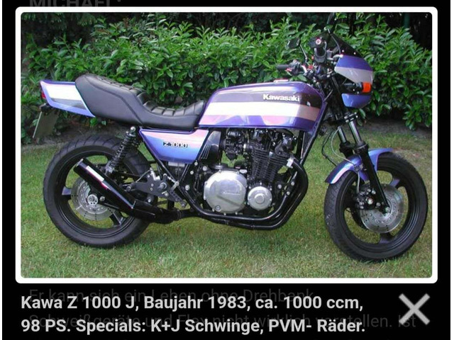 Aus Nachlass wird ein Kawa Z 1000 Umbau verkauft. Das Fahrzeug ist in sehr gutem Zustand und läuft hervorragend! Weitere Fahrzeuge im Angebot! bei Fragen bitte per mail Kontakt aufnehmen. Preis auf Anfrage.