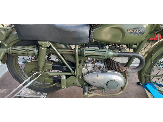 Moin zusammen, ich spiele mit dem Gedanken meine Monark M550 Military Bj. 11.1954, KM 11967 zu veräußern. Seltene top-erhaltene Monark des schwedischen Militärs, vollständig original, originale Kilometer und Ausstattung, alle Papiere, 15 PS ILO Zweizylinder, deutsches Gutachten für Zulassung vorhanden, somit Zulassung in Deutschland kein Problem. Lief auf roten Kennzeichen. Habe sie zum Laufen gebracht, ist im totalen Originalzustand, Elektrik, Mechanik, Kupplung, Getriebe, Motor soweit alles okay und es ist keine „Bastelbude“. Jeder KM ist durch das schwedische Militär in einem „Fahrtenbuch“ dokumentiert. Bitte nur Interessenten anschreiben, die wirklich ein Kaufinteresse haben!! Keine „Neugierigen, ich wollte nur mal fragen“ oder ähnliches, das kostet mich zu sehr Zeit und Nerven. Gleich gesagt, sie ist kein Schnapper! Laut KBA in Flensburg, gibt es nur 3, die auf der Straße in der BRD zugelassen sind. Es gibt natürlich noch welche in Restaurationsstatus oder in Regalen…, also, ein absolutes, seltenes Motorrad hier zu erwerben. Ob ich sie dann letztendlich verkaufe, kommt es auf den Preis drauf an, den ich erzielen werde. Ich bitte um realistische, faire Angebote! Angebote liegen schon vor! Also, richtigen Preis nennen und wer als Erste kommt, der hat sie!