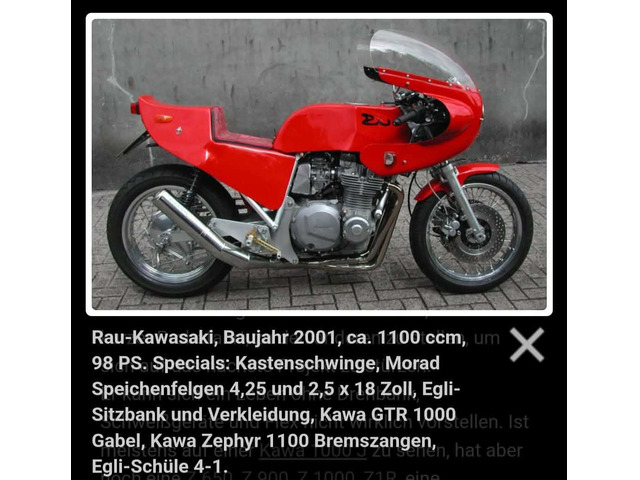 Aus Nachlass wird ein Kawa Z 1000 Umbau verkauft. Das Fahrzeug ist in sehr gutem Zustand und läuft hervorragend! Weitere Fahrzeuge im Angebot! bei Fragen bitte per mail Kontakt aufnehmen. Preis auf Anfrage.