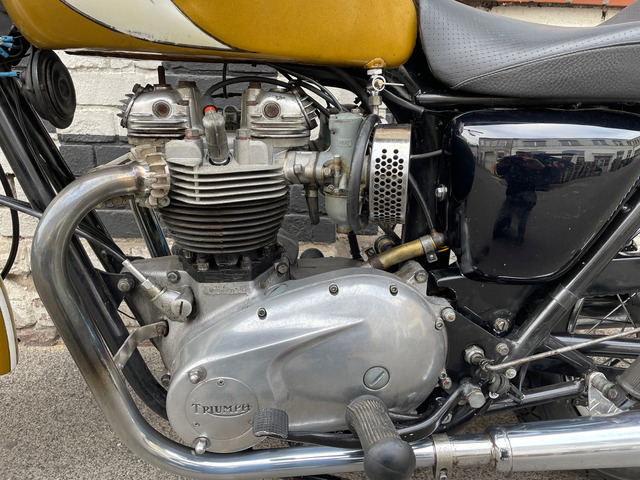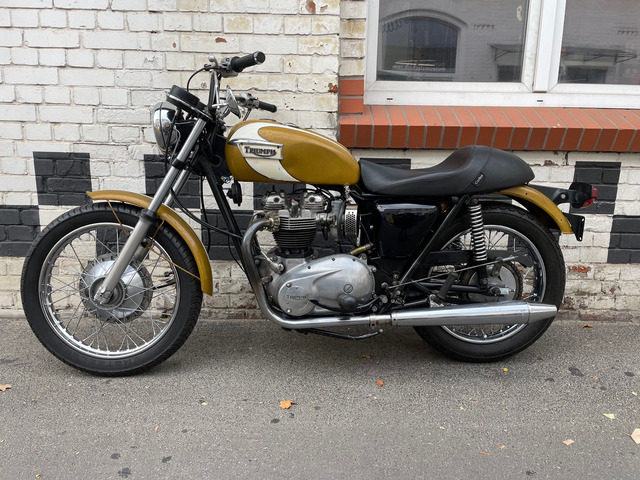For health reasons, selling a 1975 Triumph T150 V, rebuilt to mint condition, Matching Numbers, invoices available, perfect condition. Electronic ignition (micro power ignition triple Boyer), Boyer rectifier regulator. New spoked rims by Chresphonte (Chartres), new clutch, Pack 124 Burlen carbs, 3 first carbs, etc... "Carte Grise collection" (Collector's Reg...