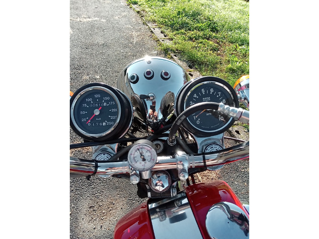 For health reasons, selling a 1975 Triumph T150 V, rebuilt to mint condition, Matching Numbers, invoices available, perfect condition. Electronic ignition (micro power ignition triple Boyer), Boyer rectifier regulator. New spoked rims by Chresphonte (Chartres), new clutch, Pack 124 Burlen carbs, 3 first carbs, etc... "Carte Grise collection" (Collector's Registration Document), FFVE certificate. Technical inspection without any faults, passed on 11/18/2023, valid for 5 years; will of course be redone before the sale. Description of work performed available. 560 kms done since the restoration, engine being broken in. Technical manuals provided as well as the restoration file. Price justified in relation to the condition of the motorcycle.