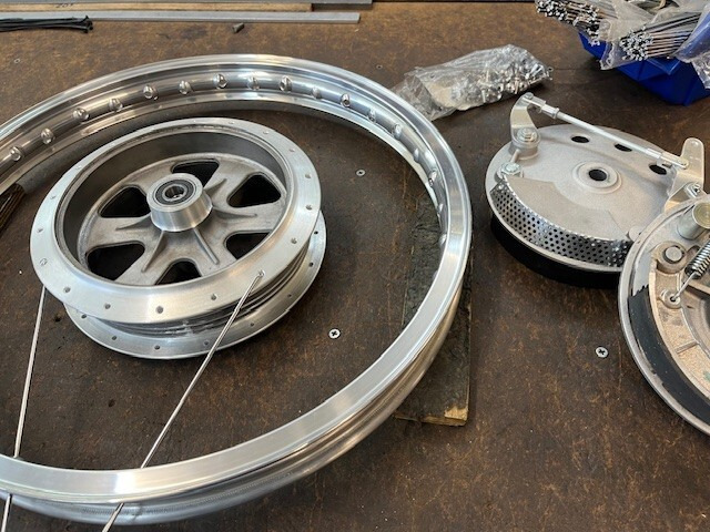 Honda CR 181 Repl. 230 mm Doppel Duplex Bremse für racing bike Honda mit WWS Chromspeichen eingespeicht Alu Hochschulterfelge 1.85x18 oder Dimension nach deinem Wunsch einfach Norbert fragen 0043 664 1319079 moser@oldtimerreifen.at www.oldtimerreifen.com