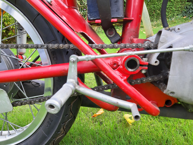 • 210er Doppelduplexbremse vorn (originale Fontana mit neuen Rennbelägen, Magnesium professionell gegen Korrosion behandelt), hinten original Ducatibremse mit Rennbelag