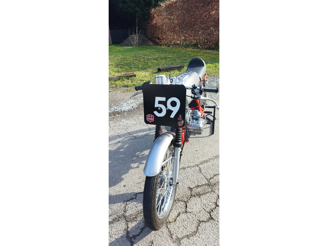 Eine sehr schöne Nachbildung eines Honda-Rennmotorrads aus den 60er- und 70er-Jahren, basierend auf der Skyteam 125. Das Motorrad ist komplett neuwertig und wurde nur wenige Kilometer gefahren.