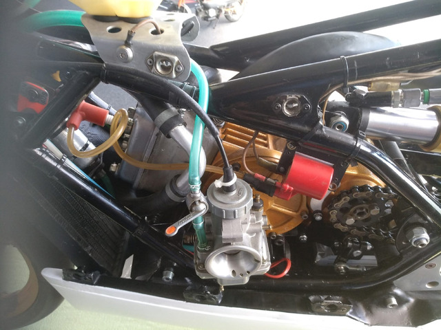 yamaha tz 370 harris , con cilindri tz 750 red valve 6 petali,cilindro 350 tz 3g3 6 travasi ,i cilindri sono tutti con pistoni e cromature nuove,bielle nuove,la moto e' in perfetto stato.pronta pista.
