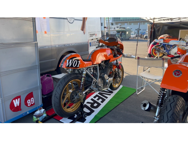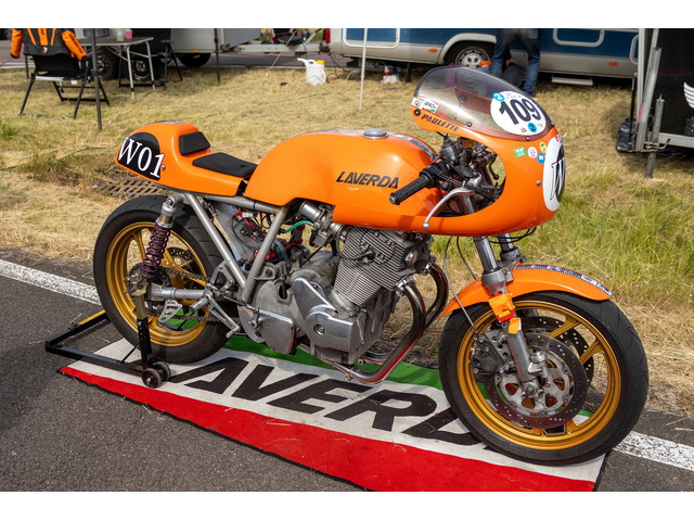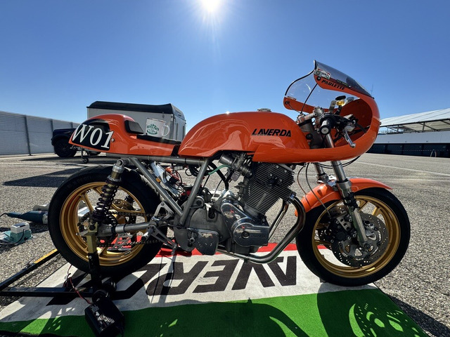 Ich biete hier eine Laverda 750 Rennmaschine an. Das Motorrad ist ein Eigenbau auf einem Zentralrohr-Rahmen. Der Motor ist komplett SFC Spec mit leichter Kurbelwelle, erleichtertem Ventiltrieb etc.