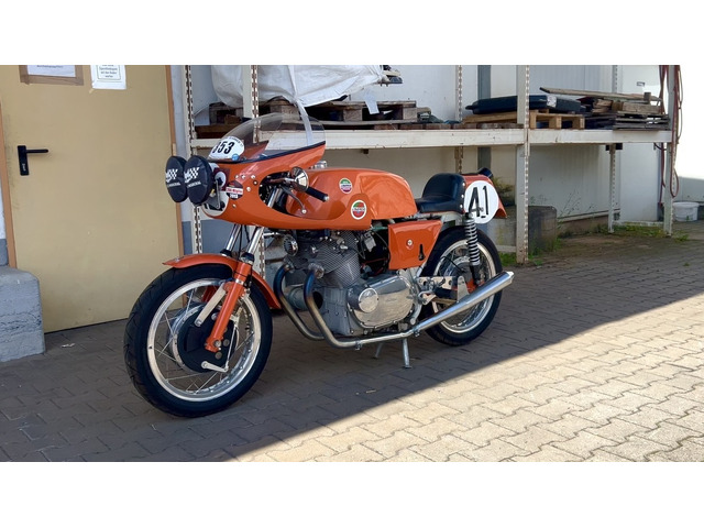 Diese Maschine wurde für Aldo Larcher von ehemaligen Laverda-Mechanikern als Geburtstagsgeschenk aufgebaut. Er ist damit beim Imola Revival 2012 mitgefahren , genau so wie 1972 als Ducati den Doppelsieg einfuhr. Das Motorrad ist komplett SFC und auch so im Brief eingetragen jedoch nicht im Registro gelistet. Das Motorrad hat TÜV. Das Motorrad läuft und fährt perfekt.