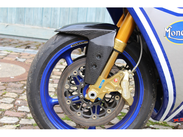Viele Teile sind nicht Serienteile, wie z.b. die Schwinge Voll carbon ist im Gegensatz zur Serie( die carbon verkleidet war. Der Tank ist auch carbon, die Tachoeinheit ist nicht Serie und vieles weitere nicht.