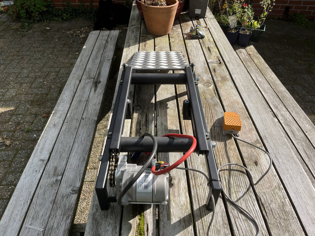PADOCKSTARTER/OLDTIMERSTARTER 12V,VIELE JAHREN BEBRUFTES MODEL. NEU GEBAUT. FUSZBEDIENUNG. STARTERMOTOR MIT VERTRAGUNG FUR MEHR KRAFT, STARTET ALLE MOTORRADER AUSSER CROSS. DIE ORIGINALE. BELTDRIVE UEBER 2 ROLLEN. AUFFAHRRAMPE. AUSLAUFROLLEN.