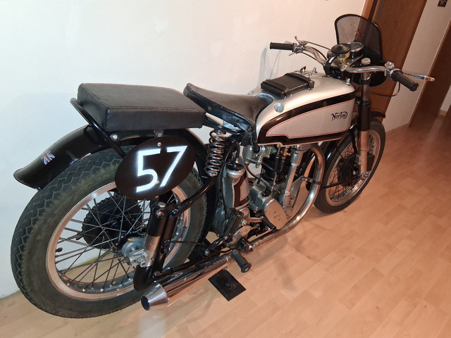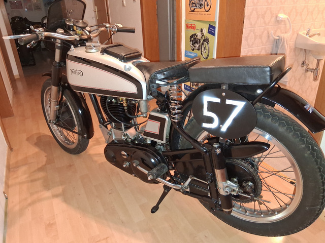Biete hier eine sehr schöne Norton manx (garden gate) mit Norton International Motor (500ccm)und Getriebe von 1947 zum Verkauf an. Technisch einwandfrei, läuft und fährt sehr gut und schnell, neuer Kolben, neue Ventile vor ca. 200km. Sie besitzt einen Amal TT Vergaser, das konische Vorderrad mit magnesium Ankerplatte, einen Andre Lenkungsdämpfer, einem bolt through Renntank, Aluminium Hochschulterfelgen, Roadholder Gabel, BTH racing magneto und britischen Papieren.