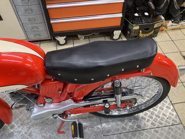 Biete hier für einen Freund ein günstiges Einsteigermotorrad aus italienischer Sammlung an. Ducati Mototrans gestrippt und umgebaut für Präsentations- oder Demoläufe. Auf dem Motorgehäuse steht DM250. Sie hat eine Marzocchi Gabel und eine riesige Bremstrommel, deren Hersteller mir unbekannt ist. Die Duc lief zuletzt 2024 bei einem Demolauf in Frankreich, sei...