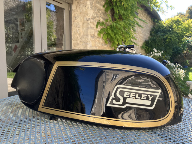Motor: Original Daytona Zylinder und Köpfe Leichte TR Kurbewelle mit aluminiumgehäusen TR Primärgetribe mit geraden Zähnen Mikuni 34 mm Vergaser Kokusan Zündung Figaroli Erweiterungen Radfahren: T 500 Rahmen und Schwinge Borrani Räder Ceriani GP Gabel original Ceriani Stiossdämpfer Bremse: Original Ceriani 4 Backen vorderradbremse