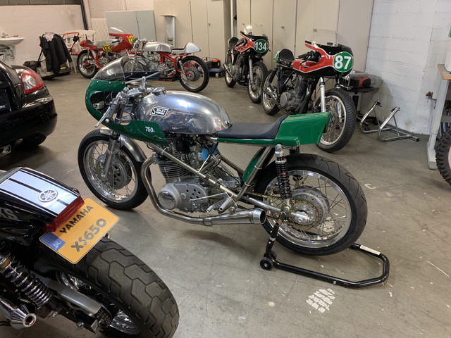 Guten Tag, zum Verkauf steht eine neu aufgebaute Rennmaschine, auf Basis eines Seeley MK4 Rahmens, mit einem auf 750 ccm vergrößerten Yamaha XS 650 Motor. Der Motor wurde in diesem Zuge gestrahlt und überarbeitet, aber bis dato noch nicht bei einem Rennen eingesetzt.