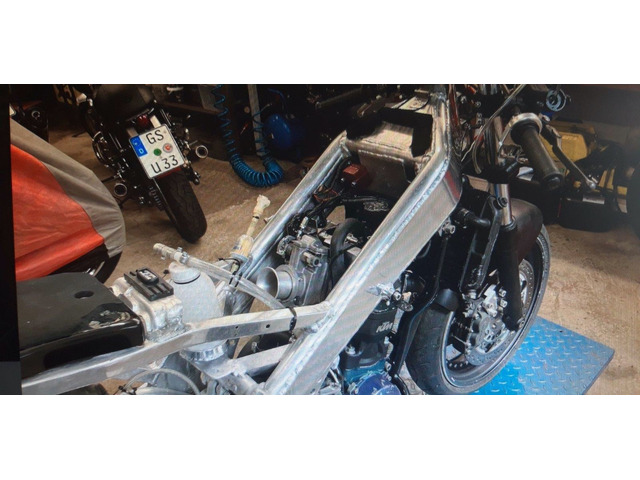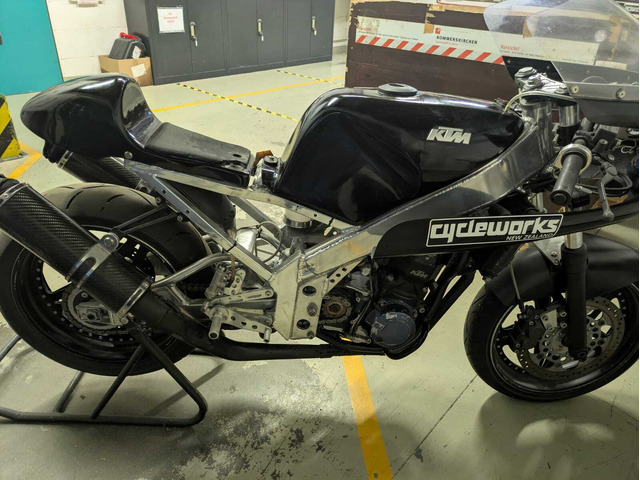 Hier kann man einen echten SOS-Racer mit schöner Vergangenheit erwerben. Dies ist ein Eigenbau aus Neuseeland , entstanden ca 1992 und zunächst in Neuseeland und Australien in der BEARS Serie gelaufen. Wie das Fahrzeug nach Europa kam ist unbekannt. Es wurde vor ca 8 Jahren überarbeitet und rennfertig gemacht, jedoch nie gefahren. Dann wurde es von einem Schweizer Freund vor zwei Monaten erworben der die 117 kg leichte Maschine mit dem 600er KTM Motor auch einsetzen wollte , jedoch hat er sich für eine andere Fahrzeug-Kategorie entschieden. Deshalb steht das schöne Motorrad wieder zum Verkauf.