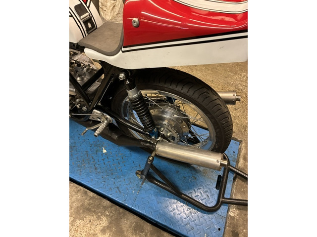 , Motor mit erleichterte Kurbelwelle, verstärkte Kupplung, Rex-Zündanlage, Zylinder mit TR-Einlasskanälen, Zylinderköpfe mit zentraler Zündkerze, 38mm. mikuni carburator.