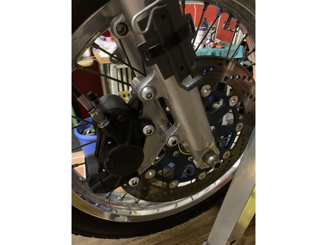 Zwei Kolben Grimeca Bremszange mit EBC Rennbelägen, hohle Vorderradachse,