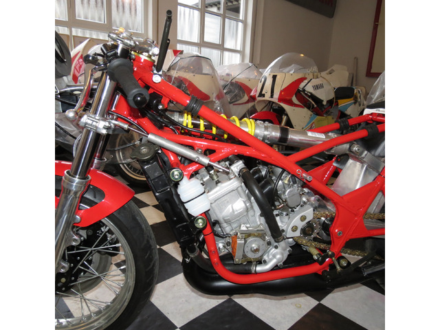 Zum Verkauf steht eine individuell gestaltete und gebaute Yamaha YZR 500 GP Marlboro Replika. Beschreibung: - TZR 250 3MA Rahmen. - R6R Schwinge. - Öhlins-Fahrwerk mit Sechslenker-Umlenkung. - Öhlins-Gabel. - Brembo 3,5-Zoll-Vorderrad und 6-Zoll-Hinterrad. - Brembo 30/34 CNC-Bremssättel mit 320-mm-Bremsadaptern aus 7074 T6 Aluminium und Brembo-Bremsscheiben....