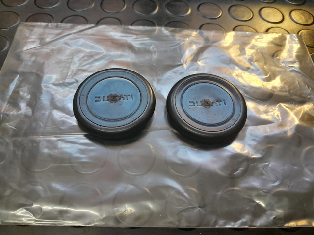 BIETE EIN PAAR ORIG. NEUE ABDECKUNGEN FUER DIE SCHWINGENACHSE. DUCATI TWIN UND BEVEL