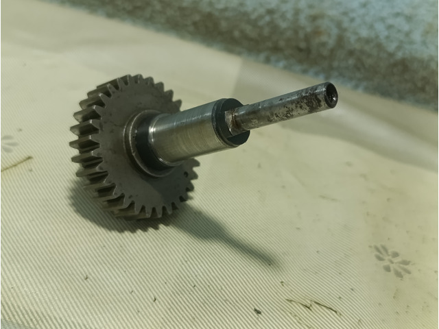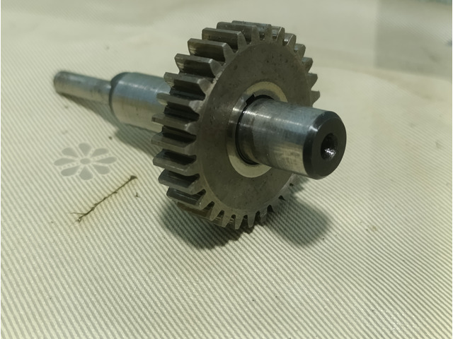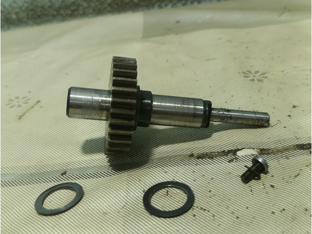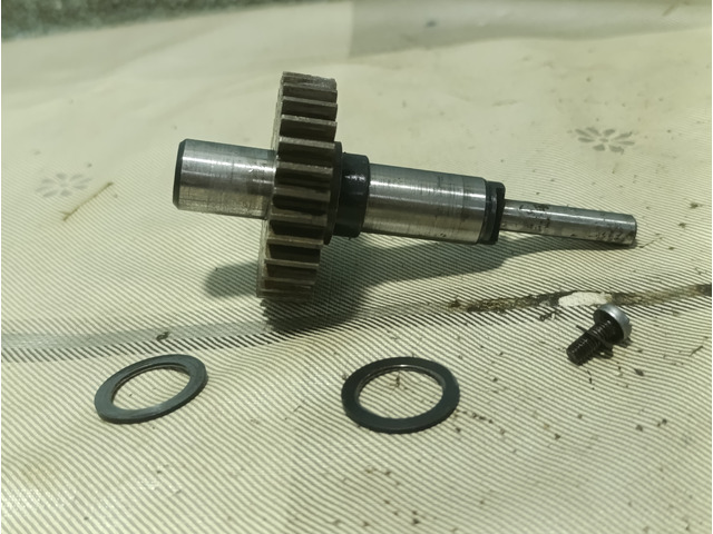 Ducati single ignition distribution gear, all models. Teeth, shaft and thread in good condition, includes adjustment washer.