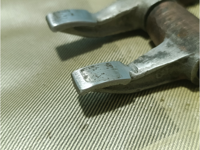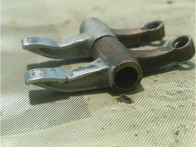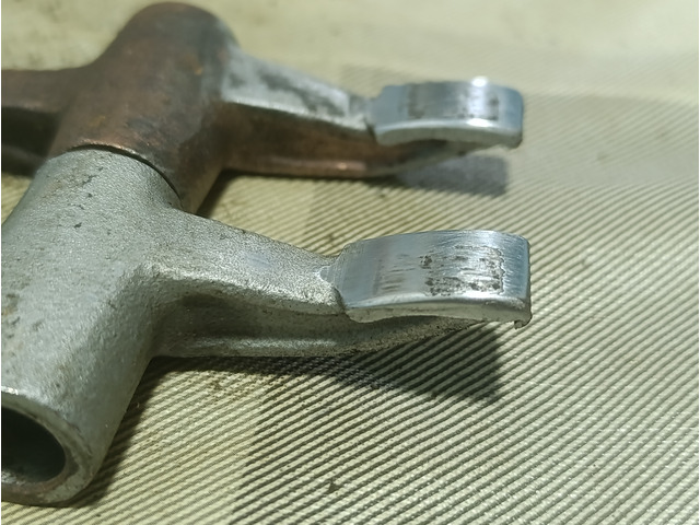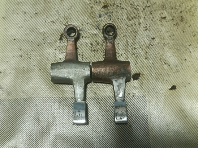 Pair of Ducati rocker arms, the skid plate is worn but retains its curvature.