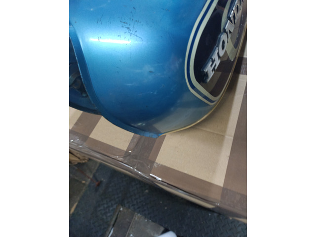 Tank mit Deckel und Benzinhahn , innen fast sauber , leichter Flugrost auf den Tunnel , der Tank wurde mal laienhaft Teil Lackiert , die Mitte ist eine andere Farbe und der Tank hat links ein paar Beulen , siehe Fotos Preis 160 €