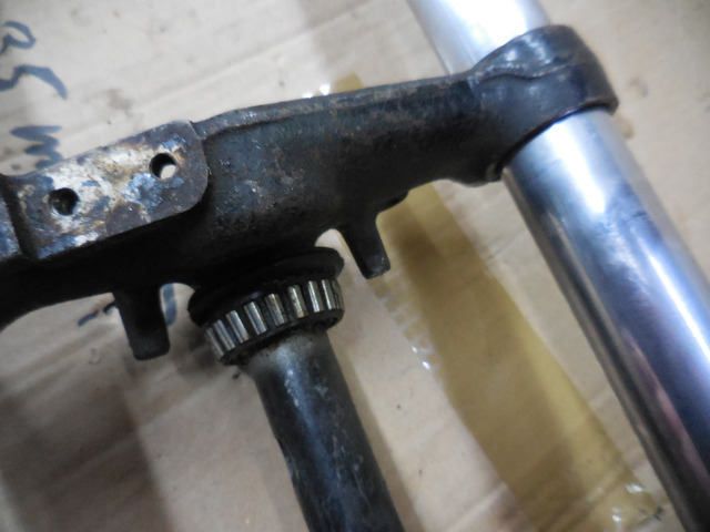 Biete hier für Honda CB 750 Four Gabel für eine Bremsscheibe , 35 mm , an passt auch bei CB 500/550 Four , Gewinde in Ordnung , Lenkradschloß von unten --ohne Schlüssel , der Anschlag wurde durch Schrauben begrenzt , Stummellenker , Chrom im Tauchbereich in Ordnung , Lack sollte neu und die Simmerringe sind in Ordnung nur steht die Gabel schon länger , Preis 145 €