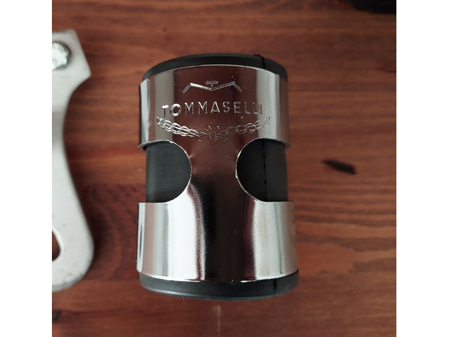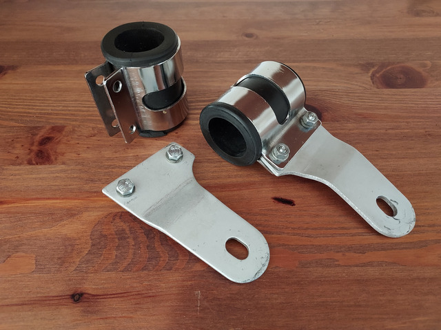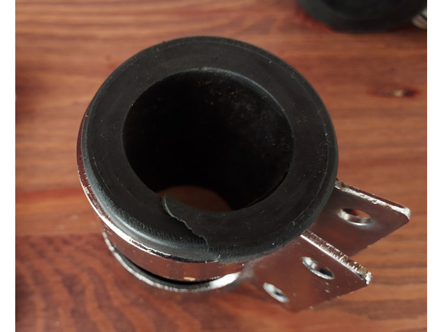 Zustand gebraucht. Chrom okay. Abdruck von Zahnscheibe auf der Innenseite einer Strebe, kleine Beschädigung an einer der beiden Gummitüllen.