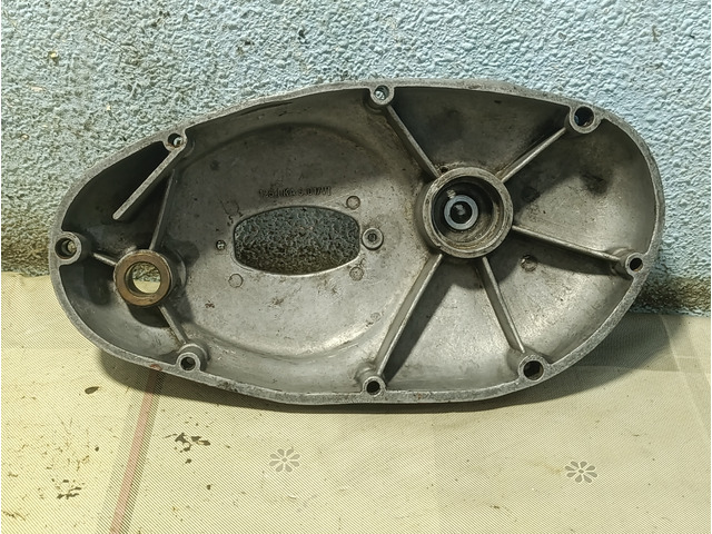 Mototrans clutch cover, as shown in the photos, needs polishing. For second-generation narrow-case engines with the large clutch plate: Ducati 160, 175, 200, 250 TS, Elite, Deluxe, Road, and 24 Hours.