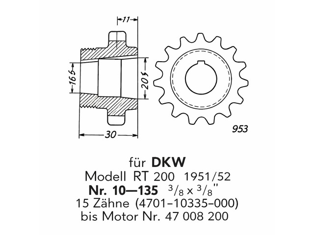 New Old Stock Kurbelwellenritzel DKW RT 200,