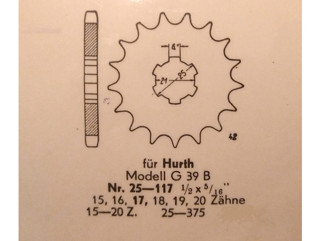 für Hurth Getriebe G 39 B. 1/2 x 5/16, 16 Zahne