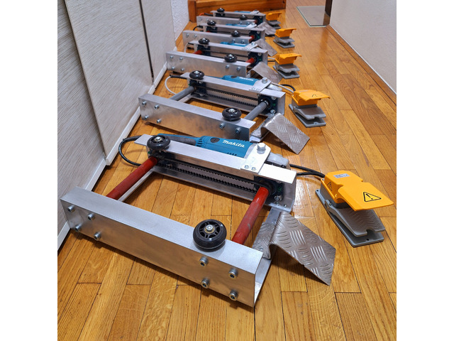 Die fertige PRO Version kann entweder mit einer 2200 Watt Makita oder 2600 Watt Stahlwerk Antriebsflex geliefert werden und relaisgesteuerten 15 A Fußtaster.