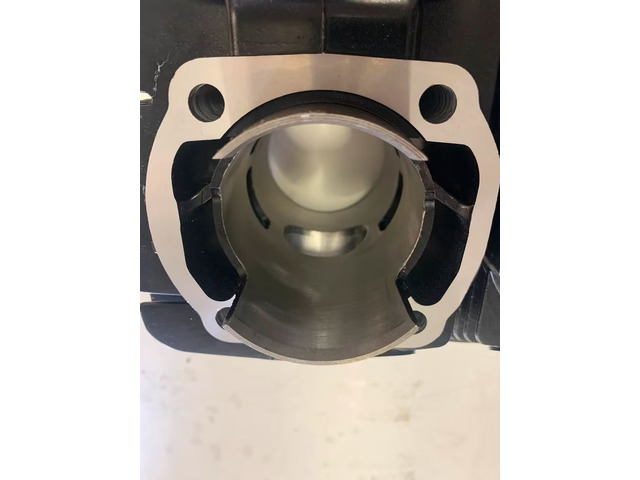 Kolben(Ypvs) NEU, inkl. Kolbenringe, Kolbenbolzen und Clips, Kolbenbolzenlager, wurden an den Zylinder angepaßt (Nase am Einlaßhemd entfernt/Bohrung für Kolbenbodenkühlung) und mit 600erstel Kolbenspiel in den Zylinder eingeschliffen.