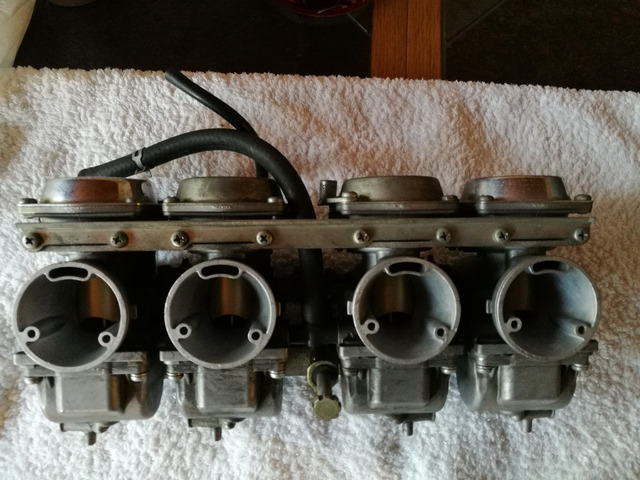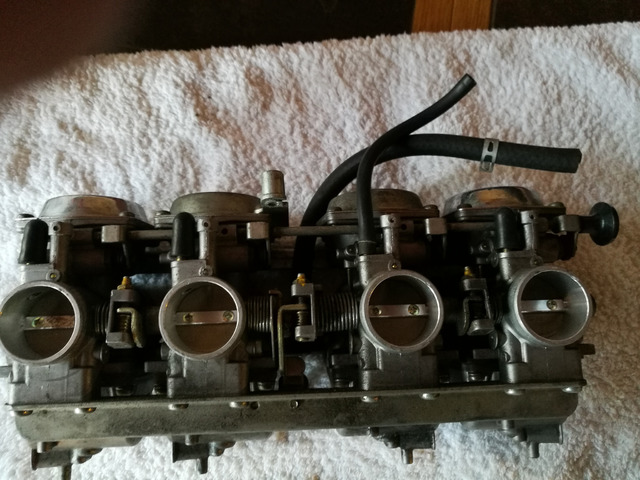 Die Vergaser wurden vor einigen Jahren aus einer Unfallmaschine ausgebaut und eingelagert. Die Anlage befindet sich in einem guten Zustand. Die Membranen arbeiten einwandfrei, vor Einbau sollte man jedoch evtl. die Schwimmerkammern reinigen und die Bedüsung überprüfen.