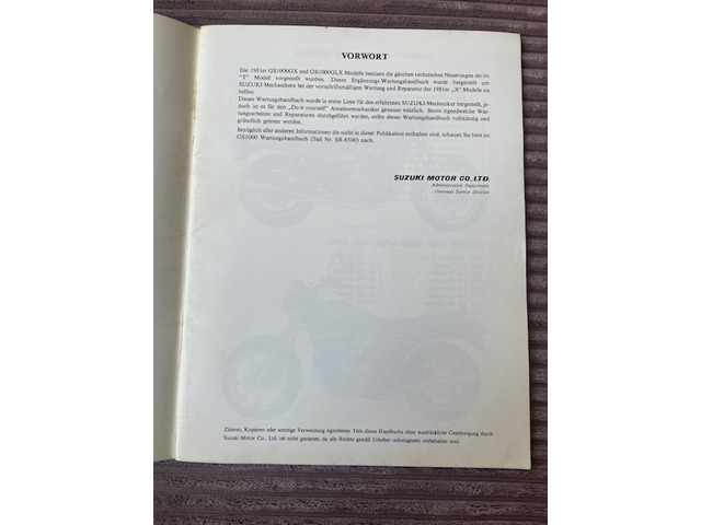 Suzuki GS 1000G / GL original Suzuki Werkstatthandbuch Nachtrag