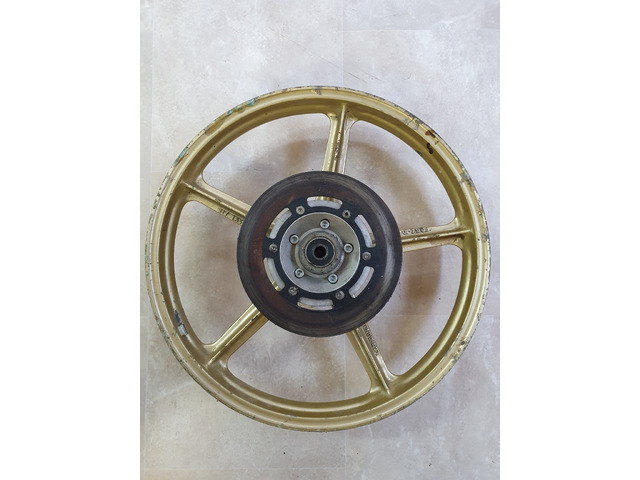 Gebrauchte Campagnolo Felge von einer 125er aus der österreichischen Meisterschaft. Sollte Baujahr 1978 sein. Der Lochkreis für das Kettenrad beträgt 80 mm, der Bremsscheibendurchmesser 220 mm, die Dicke der Bremsscheibe 5 mm. Zustand siehe Bilder. Steht seit über 20 Jahren bei mir im Keller.