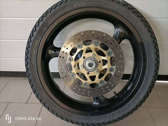 Die Gabel stammt von einer Yamaha TZ,Durchmesser 35 mm mit Brembo Bremse. Ein Standrohr hat leichten Rostansatz. Das Teil lagert seit 10 Jahren bei mir.