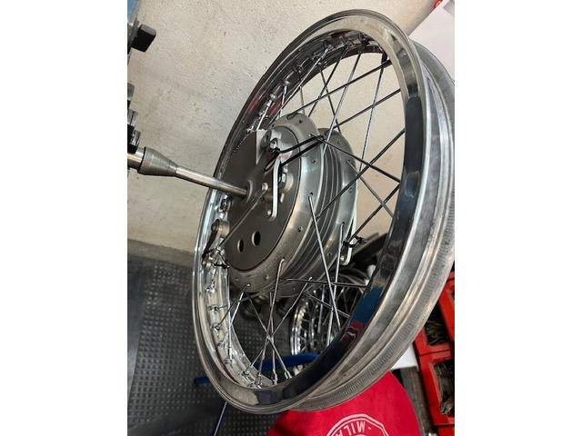 Ceriani 230 mm Doppel Duplex Bremse eingespeicht Alu Hochschulterfelge 1.85x18 oder für dein Motorrad die Dimension Felge nach deinem Wunsch bis zur 260 mm Bremse wie Bild Yamaha , wir fertigen dir alle Räder in unserer Radspannerei /Österreich - einfach Norbert fragen ! 0043 664 1319079 moser@oldtimerreifen.at www.oldtimerreifen.com