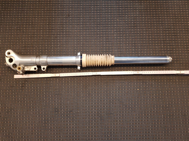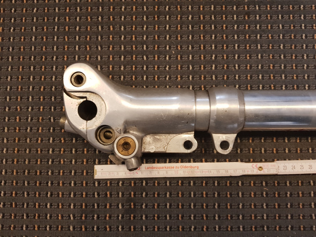 Biete die linke Gabel-Seite einer Forcella Italia Endurance von einer japanischen Saturno. Chrom des geraden Standrohrs sehr gut, ohne Pitting. Gabelfuß leicht verschmutzt.