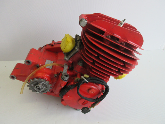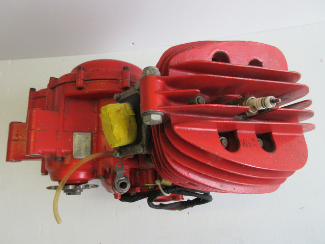 Self made engine out of the 60's/70's. Made with a Kreidler crank case and build in a 7 speed Sachs or Zündapp gear box. Zylinder is a upgraded Zündapp KS 50 water cooled cylinder with head. Gear box reduced to 6 speed because of FIM-regulation end of the 60's to limit the gear boxes to 6 speed! Very nice engine any build with a lot of Know-How. Nice to race...