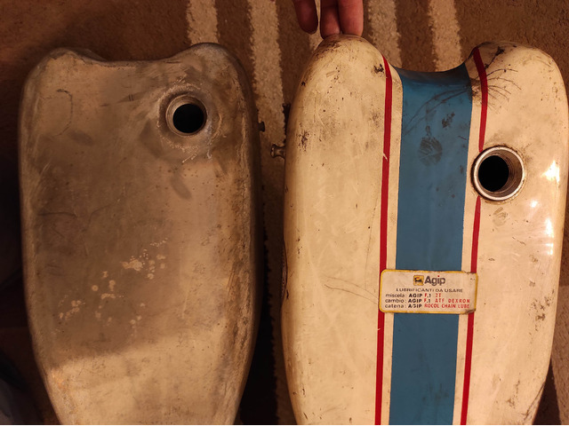 Die Gabel stammt von einer Yamaha TZ,Durchmesser 35 mm mit Brembo Bremse. Ein Standrohr hat leichten Rostansatz. Das Teil lagert seit 10 Jahren bei mir.