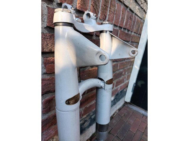 Biete die linke Gabel-Seite einer Forcella Italia Endurance von einer japanischen Saturno. Chrom des geraden Standrohrs sehr gut, ohne Pitting. Gabelfuß leicht verschmutzt.