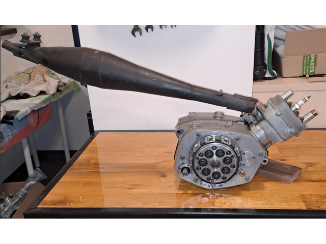 Komplet Cobra Rennmotor, Drehschieber einlass, Wassergekühlt - mit Mikuni Vergaser und Auspuff.