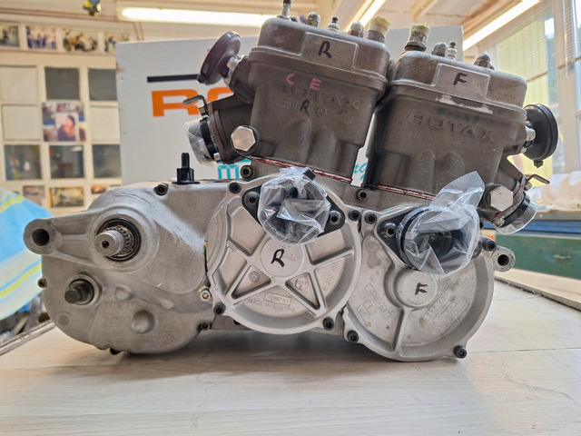 Frisch revidiert ( Gehäuse unbearbeitet-neuwertig) , aufgebaut als 270ccm Motor für legelen Einsatz in 350er Klasse ( Bohrung 56 mm / Yamaha Kolben )