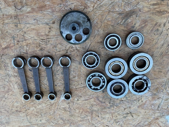 Suzuki MK3, MK 6 Kurbelwellen Teilekonvolut gebraucht. Die Kurbelwellenwange ist MK 3, Pleuel MK6. Suzuki RG 500 MK Zylinderkopf, mit neuer Einsatzkokille Er stammt aus einem Teilekonvolut, wurde neu umgearbeitet mit eine Tauschkokille. Brennraum muss noch angepasst werden. Auch einzeln.