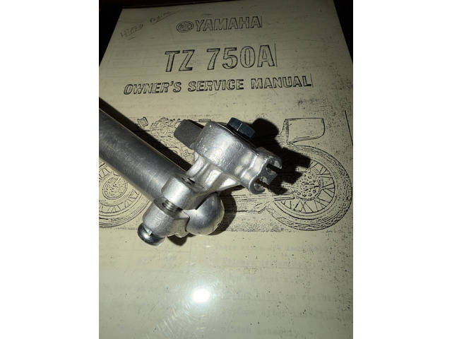 Yamaha TZ 750, neue Schwinge für zwei Stoßdämpfer (Nachbau), inklusive Lager; Achse, Räder und viele weitere Teile, darunter unfertige Nachbau-Benzinhähne. Bei Interesse bitte melden. Danke, Nick.