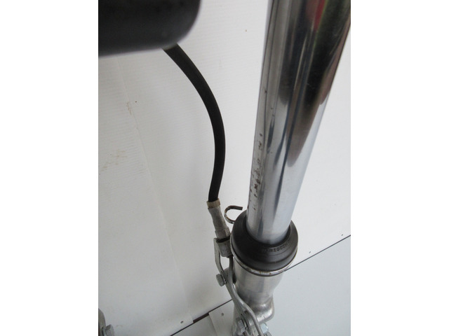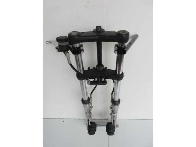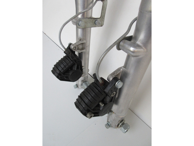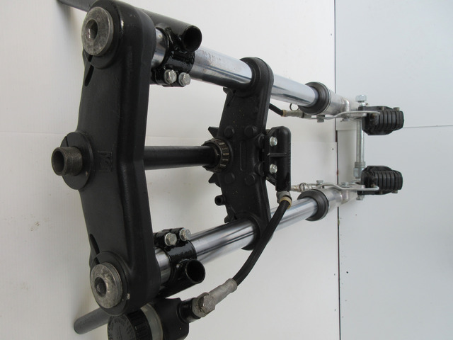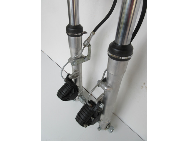 Die Gabel stammt von einer Yamaha TZ,Durchmesser 35 mm mit Brembo Bremse. Ein Standrohr hat leichten Rostansatz.
